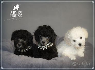 Disponibili cuccioli di barboncino toy destinati a diventare grigio perla (silver) da adulti.