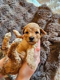 Verranno ceduti al compimento dei 75 giorni,pronti a fine maggio Disponibili 2 femmine di barboncino albicocca,mamma toy red di 27 cm con pedigree,papa red di 32 cm figlio di genitori con pedigree. I cuccioli verranno ceduti con: ciclo di sverminazione completo No pedigree 2 vaccini Microchip Certificato di buona salute del veterinario No regalo No perditempo Contatti in pv