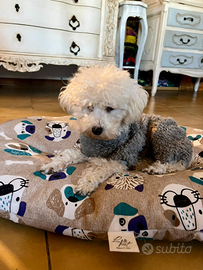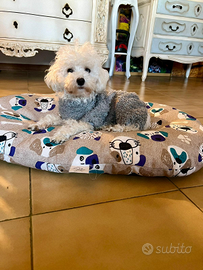 Abituata alla traversina e ha sporcare fuori, al guinzaglio, ad essere lavata e toeletta abituata ai bambini e ad essere in compagnia di altri cagnolini.