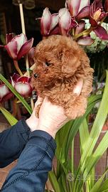 Disponibile barboncino maschio mini Toy nato il 23 febbraio e disponibile intorno prima settimana di maggio il cucciolo viene ceduto con avermi azione completa due vaccini termochip certificato buona salute