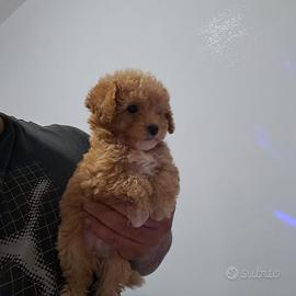 Splendido cucciolo di 55 giorni di barboncino Mini toy pesa 450 grammi mentre i suoi fratelli 800 grammi perciò il più piccolo in assoluto .