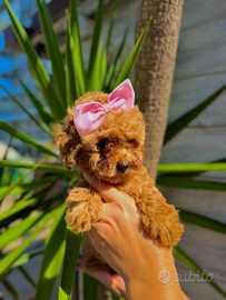 Meravigliosa cucciola di barboncino mini toy reale di quasi sei mesi,una bellezza incredibile.Dolcissima,allegra,calma e molto equilibrate,per lei cerco una famiglia che la ami come merita.La piccola verrá ceduta con tre vaccini,chip inserito e tre sverminazioni effettuate.Se interessati seriamente chiamatemi al 3513960440,per venire a conoscerla.