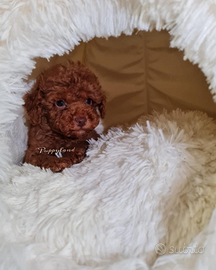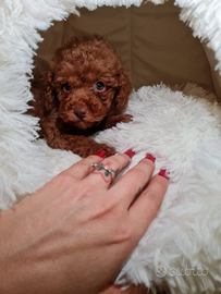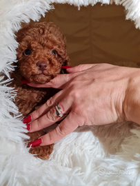 Bellissima cucciola di barboncina mini Toy di colore red.La cucciola ha tre mesi e mezzo,un carattere tranquillo,curiosa,dolcissima e già educata alle traversine igieniche.È indipendente,ha imparato a dormire da sola,svezzata e socievole con altri cani.Adora le coccole e stare all' aria aperta.