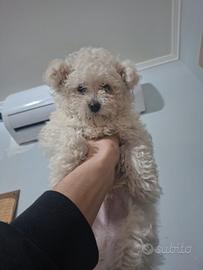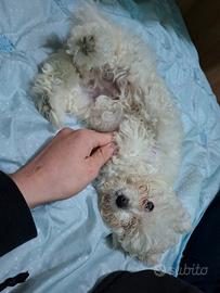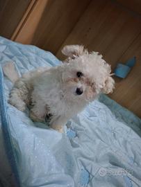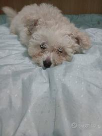 Barboncino bianco mini toy 3 mesi, padre e madre visibili