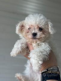 Cuccioli di Barboncino mini toy maschio e femmina nati il 3 novembre bianco figli di mamma 24cm papà 22 cm
