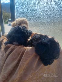 3 Femmine di barboncino nano senza pedigree vaccinate microcipate sverminate nate an casa an un ambiente familiare che usano la Traversina con genitori visibili.