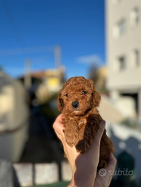 Meravigliosi e coccolosissimi barboncini nani red brown,i cuccioli hanno due mesi e mezzo ,genitori visibili,mamma nana e papá piccolissimo toy che pesa meno di 3 kg.Icuccioli sono di un rosso intenso,musetti corti e occhioni curiosi e allegri.Dal carattere equilibrato,calmo,di una dolcezza che sorprende.Per loro cerchiamo persone calme,adorabili,simpatiche e che li accolgano in casa con l' amore che meritano.Inostrj piccoli verranno consegnati con chip inserito,primo vaccino,due sverminazioni effettuate.Per venire a conoscerli e innamorarvi di loro,non vi resta che chiamarci,saremo felici di farvi conoscere la nostra grande famiglia.Ilmio numero é 3513960440.