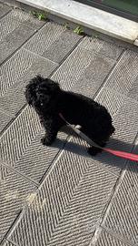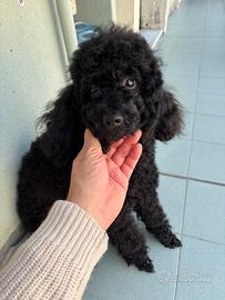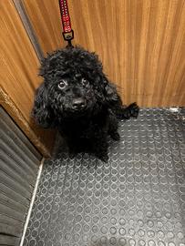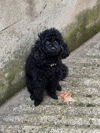 A malincuore cedo barboncino nano, altezza al garrese 32 cm, 5 kg, un anno di età, total black. Abituato a vivere in casa e fare i bisogni all'esterno o sulla traversa, con vaccini e microchip.