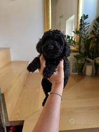 Disponile da metà ottobre meraviglioso cucciolo di barboncino toy Total black nato la notte di Ferragosto. Viene ceduto con , 3 sverminazioni , primo vaccino, libretto sanitario con certificato di buona salute e kit puppy. Possibilità di visita previo appuntamento . Altre info in privato.