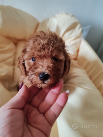 Disponibile dal 12 febbraio cucciolo di barboncino red figlio di genitori entrambi toy di mia proprietà quindi visibili. Il cucciolo sarà ceduto con vaccino 2 sverminazioni test feci libretto sanitario microchip e passaggio di proprietà per maggiori info 3480385307