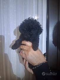 Barboncino nero ,maschietto, probabile teacup/minitoy, genitori entrambi minitoy visibili. PREZZO IMPEGNATIVO, NO AFFARISTI. NON È UN GIOCATTOLO! Disponibile dalla Befana
