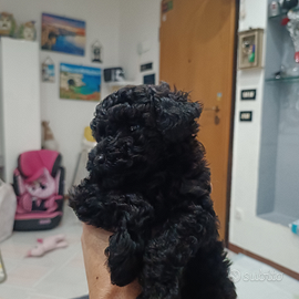 Disponibile presso allevamento amatoriale dolcissimo cucciolo maschio di Barboncino Toy, nato il 3 settembre 2025, colore nero con riflessi cioccolato.