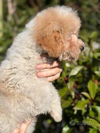 Vendo maschietto barbone toy particolor bianco/arancio. Già pronto. Genitori visibili. Affettuosissimo e socievole, vaccinato e con microchip. Per informazioni chiamare 329 8843142
