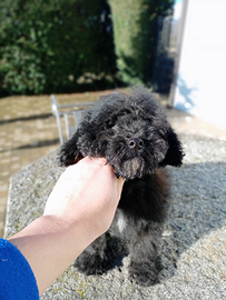 Cucciolo di barboncino , età : tre mesi e mezzo, colore nero, nato da barboncino Toy e barboncina toy limite-nana, è in ottima salute, vaccinato e microchippato, abituato alla traversina e alla convivenza con i bambini.