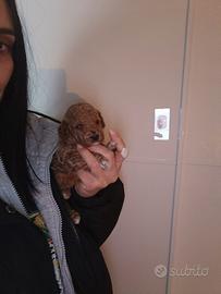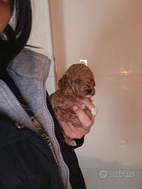 Barboncino toy maschio red con macchia bianca sul petto e sui piedini come in foto.