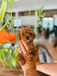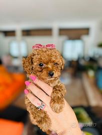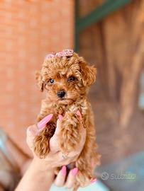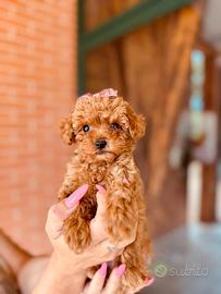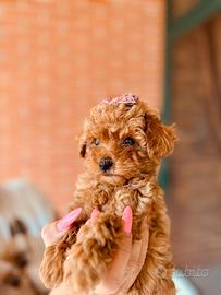Vendesi cucciola di barboncino toy color albicocca, 3 mesi di vita,con genitori visibili presso il nostro allevamento. Il papà misura al garrese 26 cm e la mamma 25 cm. Il barboncino è un cane molto intelligente, affettuoso e socievole, che si affeziona profondamente alla sua famiglia ed è facile da addestrare grazie al suo carattere vivace e collaborativo. Verrà consegnata con un vaccino ,due sverminazioni e microchip inserito. Per maggiori informazioni e dettagli chiamare. ASTENERSI PERDITEMPO