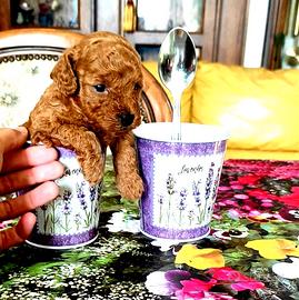 Disponibile alla prenotazione BARBONCINO maschio Red Brown di due giorni che da grande sarà sui 4 kg come i genitori che sono visibili perché abitano in casa con noi e sara' cresciuto in casa senza alcun tipo di barriere, gabbie e neanche recinti interni!