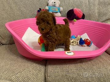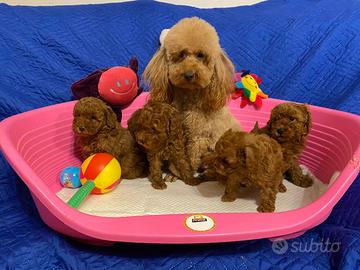 Barboncini toy, colore fulvo, rosso scuro, bellissimi cuccioli molto affettuosi e giocherelloni, nati e cresciuti in casa, entrambi i genitori visibili, con importanti pedigree Enci di prestigiose linee di sangue ed esenti dalle malattie genetiche ed ereditarie (Test Genetici Ufficiali) controllati anche per la lussazione della rotula (Certificazioni Celemasche) vendesi. FOTO REALI. Tel 3487239143