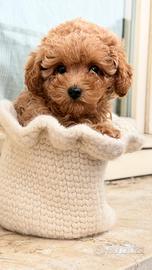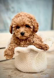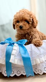 Leon è un dolcissimo maschietto Toy Poodle rosso, nato il 25 dicembre -- proprio il giorno di Natale.