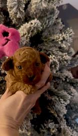 Bellissimo maschietto di barboncino toy,mamma toy color albicocca e padre Tea cup red;verrà consegnato dopo i 60 giorni,a metà marzo,sverminato,vaccinato,con microchip e certificato di buona salute.