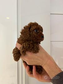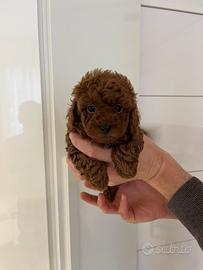 Disponibile, a partire dall'11/01/2026, cucciolo maschio di barboncino toy colore fulvo intenso con pedigree Enci, nato l'11/11/2025 in casa e cresciuto in famiglia.