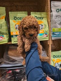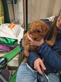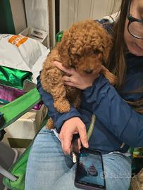 Bellissimo maschio di barboncino Red Toy due mesi da poco compiuti lo diamo con esame feci negativo 2 sverminazioni 2 vaccini certificato di buona salute microchip possiamo raggiungere tutta Italia in modo sicuro usiamo solo mezzi autorizzati Asl igienizzati con personale qualificato,per Milano e città adiacenti possibile spedizione a domicilio per tutte le informazioni pre e post vendita ci mettiamo a disposizione vi arriva iun cucciolo educato all appartamento alla traversina che vi aiuterà all approccio iniziale