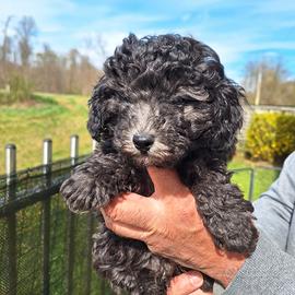 Ultimo cucciolo disponibile di barboncino maschio toy colore argento. Nato il 30 gennaio, pedigree enci, genitori entrambe testati negativi per le patologie della razza patella e PRA. Si consegna vaccinato, microchip e certificato di buona salute, fotocopia dei test sui genitori.