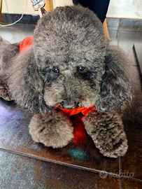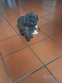 Splendido cucciolo di barboncino Toy,mamma e papà barboncino Toy visibili, maschietto colore particolarissimo tenderà a schiarire e diventare completamente grigio chiaro silver ,padre visibile come si evince in foto il colore chiaro particolare.
