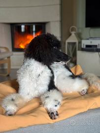 Disponibile da subito meraviglioso e dolcissimo cucciolone maschio di Barbone gigante grande mole particolor di 6 mesi. Genitori testati geneticamente. Cucciolo cresce a contatto con bambini e altri animali domestici, è socializzato ed ha carattere equilibrato, va d'accordo con tutti. Educato a fare bisogni fuori, abituato al guinzaglio. Verrà consegnato sverminato, vaccinato, con libretto sanitario e microchip inserito. Astenersi curiosi e perdi tempo. Solo persone seriamente interessate.