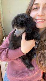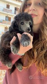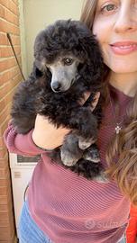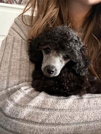 Bosco, bellissimo silverino di due mesi e mezzo, figlio di mamma Rea e papà Balù (campione nazionale e internazionale). I genitori hanno pedigree ENCI, DNA depositato, sono testati geneticamente con Vetogene (Total Clear) e certificati Celemasche per la lussazione della rotula (0/0 in entrambe le ginocchia). Bosco é un cucciolo ben strutturato con un carattere meraviglioso, è curioso, simpatico, un gran mangione e pieno di energie, con la codina sempre in movimento! È socializzato con cani di piccola taglia (adulti e anziani), coniglietti e gatti, tutti liberi insieme, abituato alle persone e alla manipolazione. il Silver nasce nero e, mano a mano che cresce, si schiarisce diventando di un bel grigio chiaro partendo proprio dal musetto. Bosco è già grigio anche sul corpo sulle radici. La rasatura del musetto rappresenta la massima espressione di standard di razza per un barbone, questo non significa che non abbia pelo sul muso, ma se vi piace con tagli commerciali ricrescerà in poco tempo. Bosco viene lavato e rasato regolarmente ogni settimana. Sarà disponibile dagli 80/90 giorni (inizio maggio) con pedigree ENCI, almeno due vaccinazioni, sverminato, microchippato e con DNA depositato. Se siete interessati a questa tipologia di cucciolo, consapevoli che un cucciolo cosi ha un prezzo impegnativo che va oltre i 2500? potete contattarmi al 3450508795.
