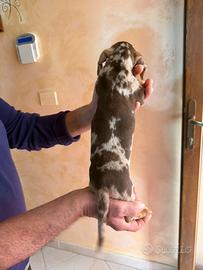 Bellissima. Femminuccia Arlechina cioccolata Kaninchen nata. Il 7 /1/2026 Verrà ceduta a 500 euro per un piccolo difetto al musetto e una Kaninchen molto piccola Completa di vaccini. Ciclo vermifugo libretto sanitario Con possibilità di trasporto in tutta Italia Per info 3427702613