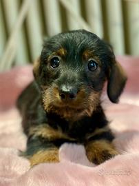Disponibile due meravigliose cucciole di bassotto nano di piccola taglia a pelo duro, color cinghiale, due femmine, nate "' 11/12/25 in Italia. Vengono cedute con il libretto Veterinario in regola: microchip inserito, primo vaccino, sverminazioni, antiparassitario. Visita veterinaria effettuata. Vendita con regolare contratto e scontrino fiscale. Pronte Subito.