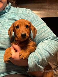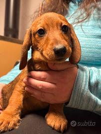 Due cuccioli maschi di tre mesi e mezzo di bassotto tedesco a pelo ruvido di taglia piccola,nani o kanichen colore foglia secca.con adempimenti sanitari completi, pedigree ENCI, certificato medico di buona salute e puppy kit.I cuccioli sono figli di genitori testati con DNA depositato cresciuti con bambini e altri animali