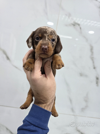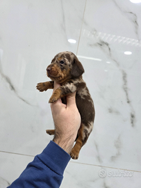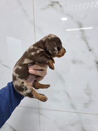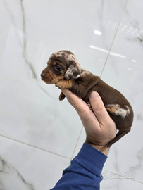 Disponibili due cuccioli di bassotto arlecchino cioccolato, sonounmaschioedunafemmina.
