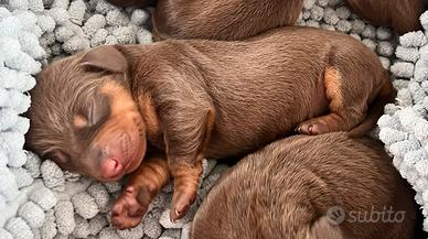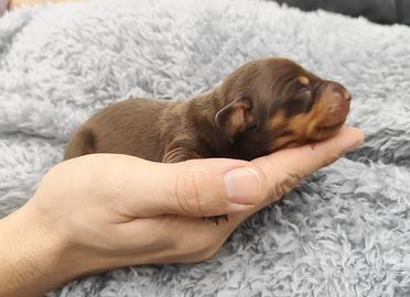 Disponibili 3 femmine bassotto color cioccolato con tan e 1 maschietto cioccolato tan,
