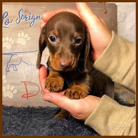 Alleviamo la razza Bassotto Tedesco a pelo raso Nano e Kaninchen, in tutte le colorazioni : Fulvo, Nero Focato, Cioccolato (Marrone Focato) , Arlecchino Chocolate, Arlecchino Silver, Tigrato .