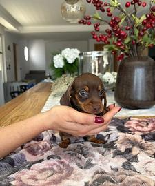 Bassotti femmina Choco maschio piebald black e white nati a marzo affidabili a maggio. Allevati in famiglia, no gabbie no box, socializzati con umani e simili. 2 vaccinazioni, 3 sverminazioni, microchip, iscrizione anagrafe canina, antiparassitario, trasferimento di proprietà kit pappa