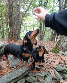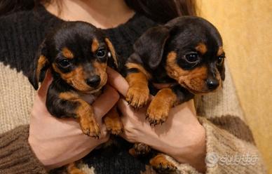 Sono nate 2 femminucce a casa nostra, cresciute in famiglia insieme ai loro genitori, che sono entrambi visibili e di nostra proprietà. Hanno quasi 60 giorni e tra poco saranno pronte per raggiungere la loro nuova casa, dove speriamo trovino affetto, attenzioni e magari qualche bambino con cui giocare. NON siamo un negozio né un allevamento intensivo: per noi è una PASSIONE FAMIGLIARE. I cuccioli crescono con noi, tra coccole, attenzioni e socializzazione quotidiana, così da arrivare sereni e fiduciosi nella loro nuova famiglia. Cerchiamo persone serie, disponibili e davvero amanti degli animali. Sono Bassotti Kaninchen, la taglia più piccola del bassotto. Entrambi i genitori sotto i 3 kg di peso. VERRANNO CEDUTE CON: -Microchip (registrazione Piemonte) -Libretto sanitario -Ciclo vaccinale completo -Ciclo sverminazione -Ciclo antiparassitario -Visita veterinaria -Documenti ASL per il passaggio di proprietà Possiamo sentirci telefonicamente, fare videochiamate e aggiornarvi con foto e video durante tutto il percorso. Possibile raggiungervi in TUTTA ITALIA tramite trasporto autorizzato dai servizi veterinari. Se pensate di poter offrire loro una casa piena di affetto, scriveteci senza problemi. Saremo felici di conoscervi.