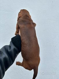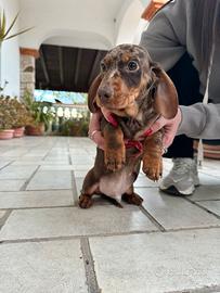 Vendo cuccioli di Bassotto ? Nati il 17 dicembre 2025, da mamma arlecchina cioccolato (taglia nana) e papà fulvo red nose (taglia standard). Disponibili: o Maschio arlecchino cioccolato, in ottima salute - €600 o Femmina fulva, in ottima salute - €500 La taglia da adulti non è ancora definibile con precisione, data la differenza tra i genitori. I cuccioli sono disponibili subito ad Aprilia, già con primo vaccino e prima sverminazione. Per info contattatemi in privato ?