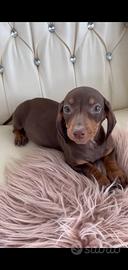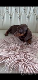 Vendo femminuccia di bassotto kaninchen femmina nata in casa il 16 gennaio. Viene ceduta con microchip, 2 vaccini, sverminazioni. + cibo per i primi giorni. É già educata e sporca sulla traversina No perditempo. Info al 3513450782