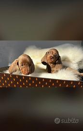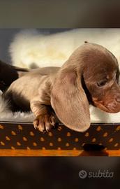 Cuccioli di bassotto maschi e femmine pronti per nuove famiglie da febbraio colori Isabella e piebald Isabella occhi azzurri. I piccoli si affideranno con certificato medico, 2 vaccinazioni, 2 sverminazioni, microchip iscrizione anagrafe e trasferimento di proprietà!!! Sono allevati in famiglia ed educati alle traversine.