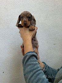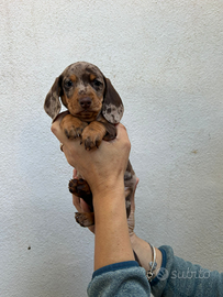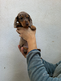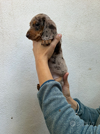 Disponibili cuccioli maschi di bassotto tedesco color arlecchino cioccolato di altissima genealogia i cuccioli saranno ceduti dopo 60 giorni con 2 vaccini, ciclo di sverminazione, microchip, pedigree Enci, prezzo impegnativo