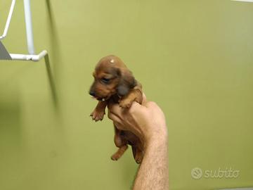 Accettiamo le prenotazioni per dolcissimi cuccioli di Bassotto nano colore rosso cervo, nero focato, arlecchino ed arlecchino cioccolato.