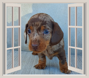 Bassotti diversa colorazione nero focato e Arlecchino cioccolato, tutti maschietti senza pedigree.