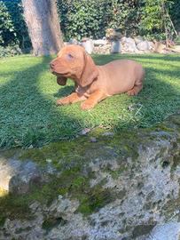 Disponibili cuccioli di Bassotto Nano No Pedigree, hanno tre mesi Un maschio di colore Fulvo-Chiaro con occhi chiari; Un maschio di colore Red Vengono consegnati vaccinati sverminati con passaggio di proprietà microchip e libretto sanitario del Medico Veterinario Abituati a fare sporco sulla traversina Tramite contatto WhatsApp possiamo mandare un video Per ulteriori informazioni o appuntamento potete contattarmi al numero 3348574291 Giorgio