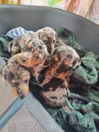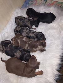 Poi, accettiamo le prenotazioni per maschietti silver arlecchino, maschietto arlecchino cioccolato, maschietto cioccolato, femminuccia nero focata e maschietto e femminuccia rosso cervo. La consegna di questi cuccioli è prevista per la fine di questo mese.