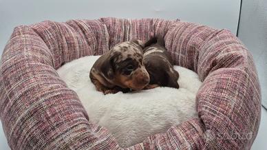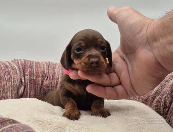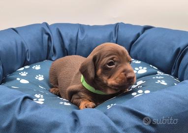 Splendite cuccilate di bassotti nano/Kaninchen , mamma arlecchino cioccolato nana e papà cioccolato Kaninchen e mamma cioccilato Kaninchen e papà arlecchino cioccolato Kaninchen. I cuccioli maschietti e femminucce cioccolato e maschietti e femminuccie arlecchino cioccolato nati e cresciuti amorevolmente in casa verranno ceduti non prima di 60/75 gg. con possibilità di consegna al vostro domicilio previo rimborso spese di viaggio. Verranno ceduti con libretto sanitario , iscrizione anagrafe canina , vaccinazione avviata , microchip , 3 sverminazioni, test delle feci e giardia , certificato di buona salute, pedigree enci e kit cucciolo. Abituati a sporcare sulla traversina . Solo per veri interessati. Per ulteriori info. contattatemi al numero 3391690882 o messaggiate su Whatsapp no ore pasti no regalo.