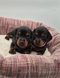 Splendita cuccilata di bassotti nano/Kaninchen , mamma Nero focata e papà arlecchino cioccolato, nate 28/03/2026 e cresciute amorevolmente in casa verranno cedute non prima di 60/75 gg. con possibilità di consegna al vostro domicilio previo rimborso spese di viaggio. Verranno ceduti con libretto sanitario , iscrizione anagrafe canina , vaccinazione avviata , microchip , 3 sverminazioni, test delle feci e giardia , certificato di buona salute, pedigree enci e kit cucciolo. Abituati a sporcare sulla traversina . Solo per veri interessati. Per ulteriori info. contattatemi al numero 3391690882 o messaggiate su Whatsapp no ore pasti no regalo.
