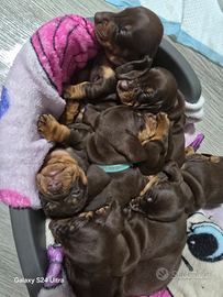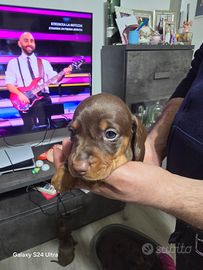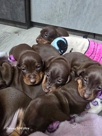 Vendo cuccioli di bassotto tedesco , color chocolate, nati il.22 gennaio,cresciuti in ambiente familiare,abituato al contatto umano.