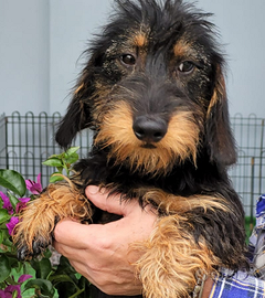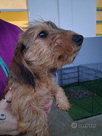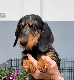 Ultimi cuccioli e cucciolonidi bassotto a pelo duro color fogliasecca, nero focato e arlecchino disponibili da allevamento riconosciuto e autorizzato. I cuccioli pronti, con tutte le vaccinazioni ,microchip con iscrizione anagrafe e pedigree. Genitori visibili e testati x le malattie genetiche della razza. Ottimo carattere.